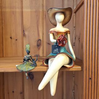 Rechts: vrouw met hoed en roos, Isa Cielo. Afkomstig uit Mexico. Amano Trade. €149,-